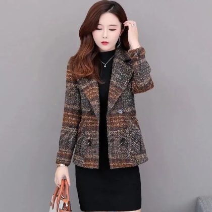| nameOriginal | Woolen Coat Women's Short Suit Popular Plaid Woolen Coat Slimming Mother's 2024 Spring Thickened Top |
