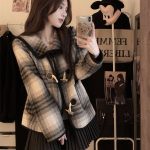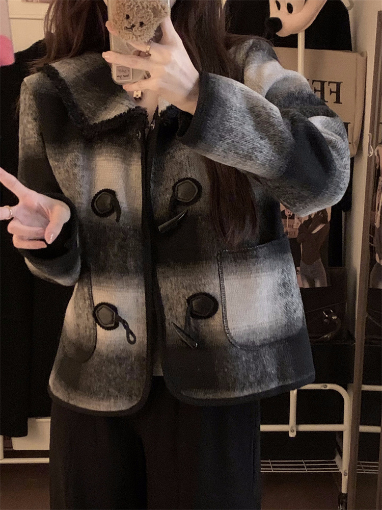 | nameOriginal | Woolen plaid thickened woolen suit jacket women's autumn and winter Korean style doll collar horn buckle cardigan top |