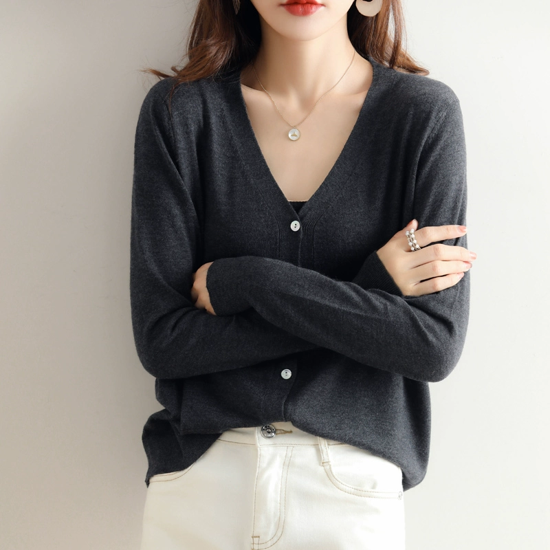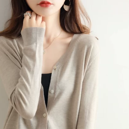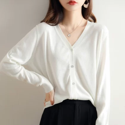Worsted knitted cardigan V-neck buttoned over fine wool