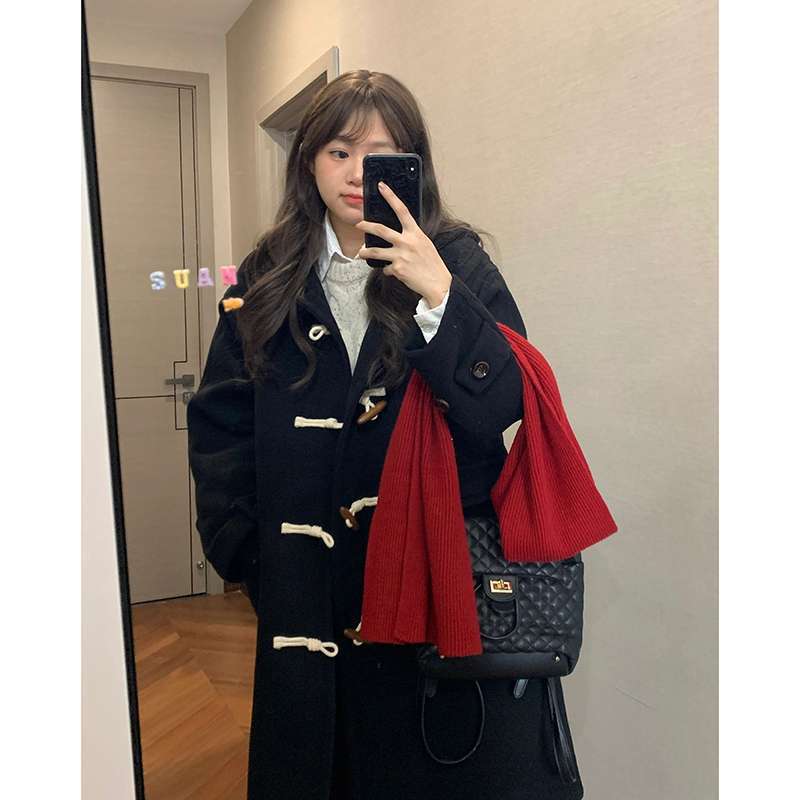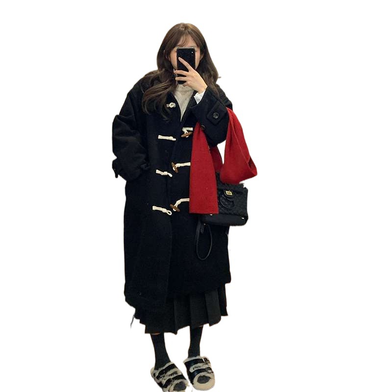 | nameOriginal | Ws black horn button woolen coat women's autumn and winter high-end feeling woolen coat 2023 new style small thick burst |