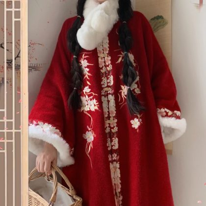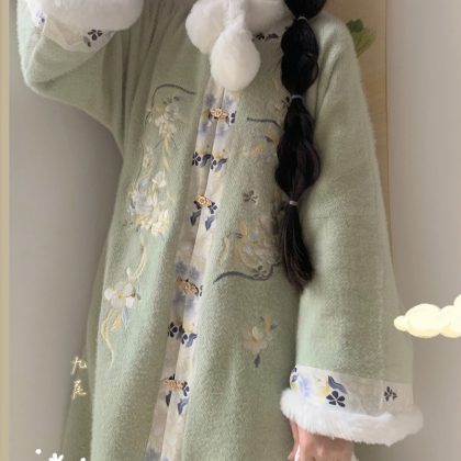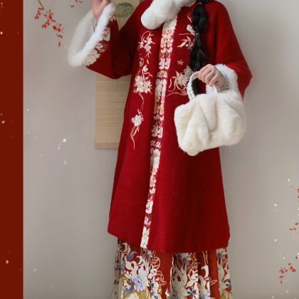 | nameOriginal | Wu Wu's original warm Ming Han clothing women's spring thickened embroidered square collar cardigan vest skirt suit |