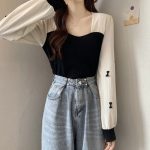 | nameOriginal | Wx Square Collar Short Knitted Base Shirt Women's Autumn and Winter 2023 New Korean Style Design Sense Slim-fit Slim-fit Stitching Top |