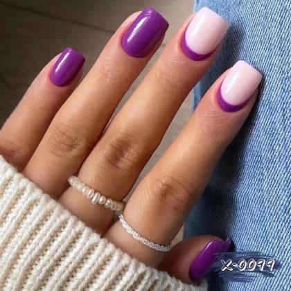 | nameOriginal | X-0099 Wear Armour European and American Short Square Purple French Fake Nail Cross-border Wear Manicure 24 Removable Pieces |
