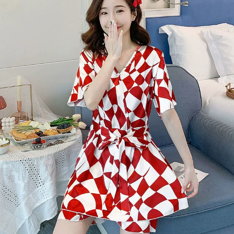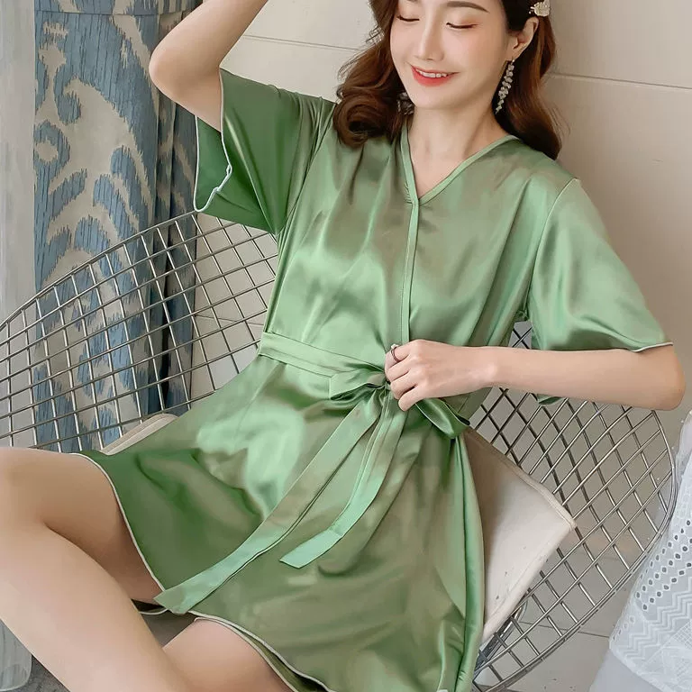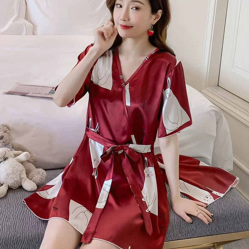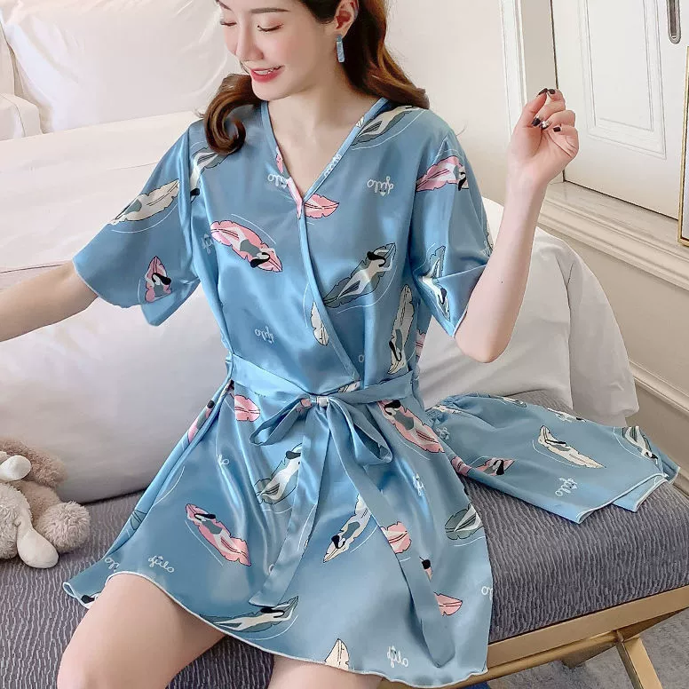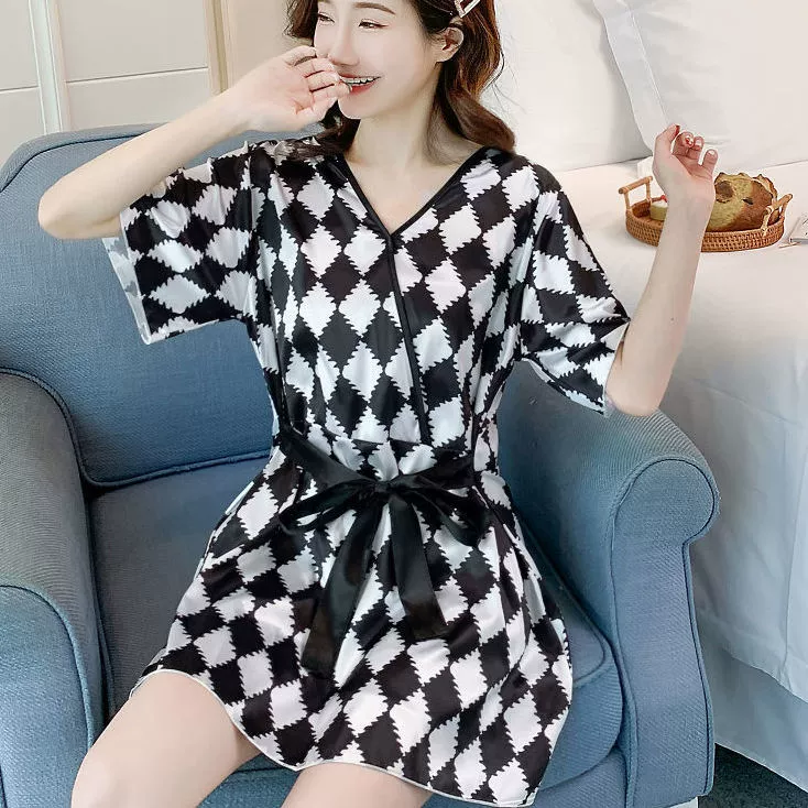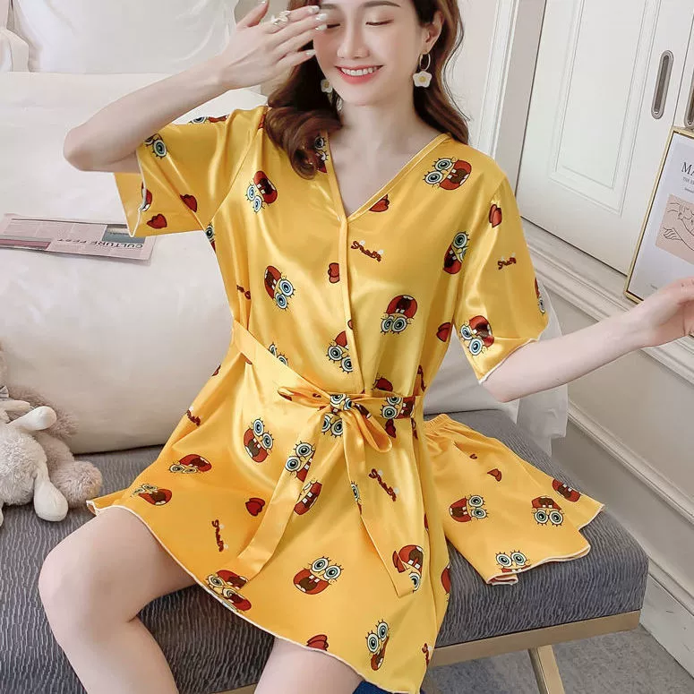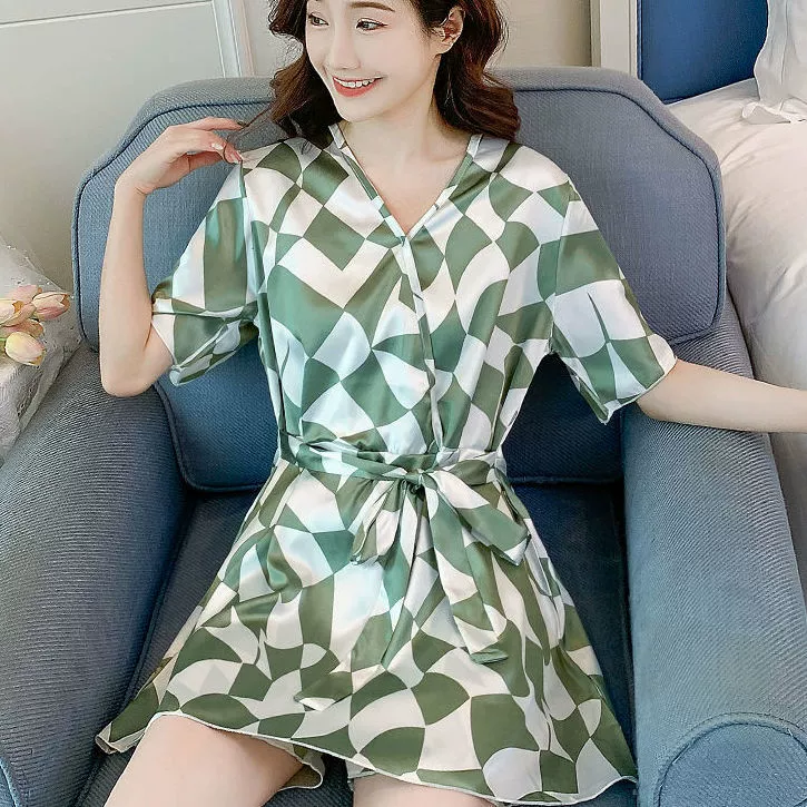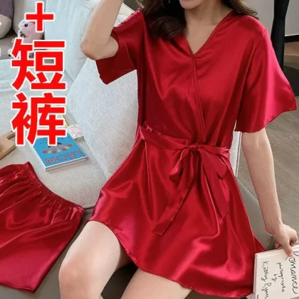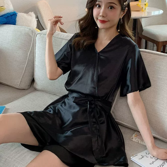 Xia ins women's ice silk outer wear Korean style loose pajamas