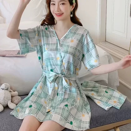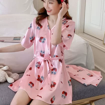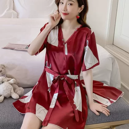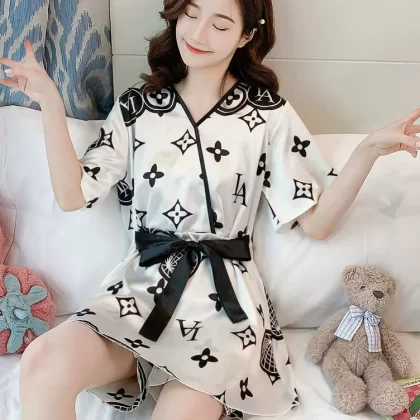 الحرير الجليدي للسيدات الصيفية يرتدي بيجاما فضفاضة كورية