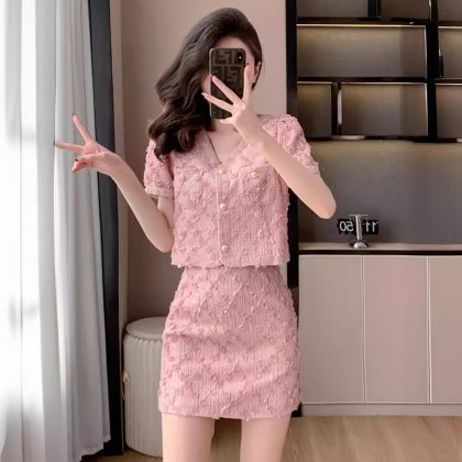 | nameOriginal | Xiao Xiang Style Pink Lace Top Skirt suit Women's Summer Dress with a Set of Two-piece Set for Small Ladies |
