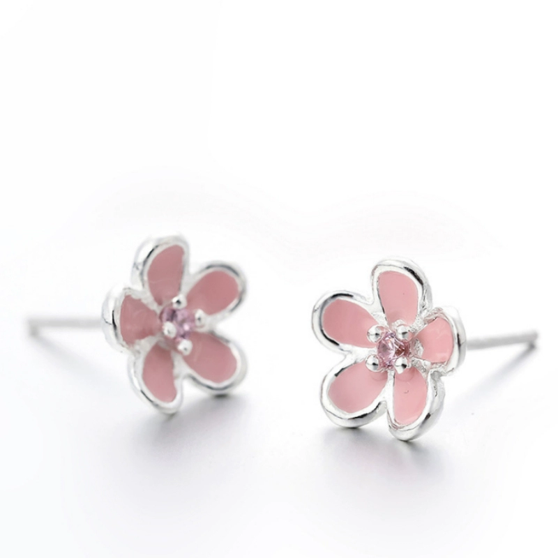 Xiao Zhang's story Japanese and Korean simple S925 sterling silver flower earrings women's earrings cherry blossom pink earrings and earrings