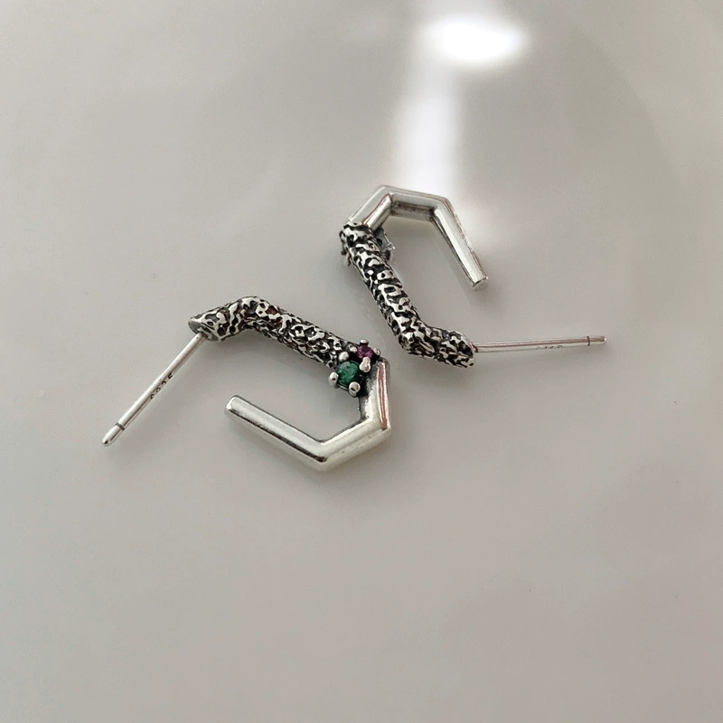 | nameOriginal | Xiao Zhang's Story S925 Silver Lava Colored Zircon Earrings Cold Wind Irregular Personalized Versatile Earrings |