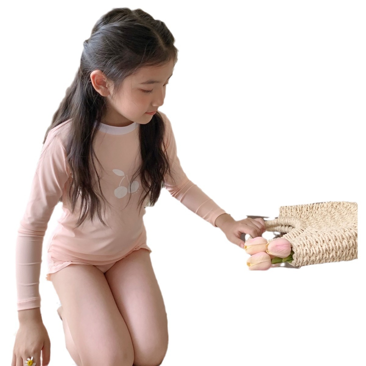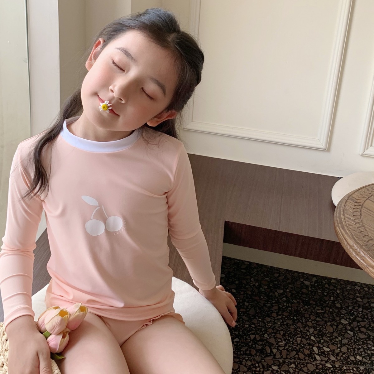 Xiaohua Home Spring and Summer New Light Meat Powder Printed Cherry Swimsuit Set New Powder