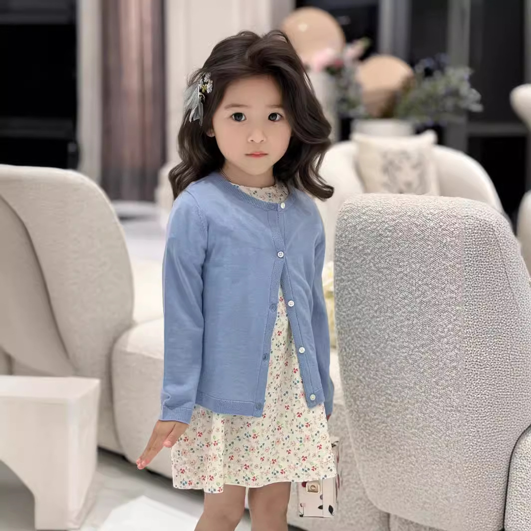 | nameOriginal | Xiaohuajia spring and summer new children's cotton knitted cardigan baby blue |