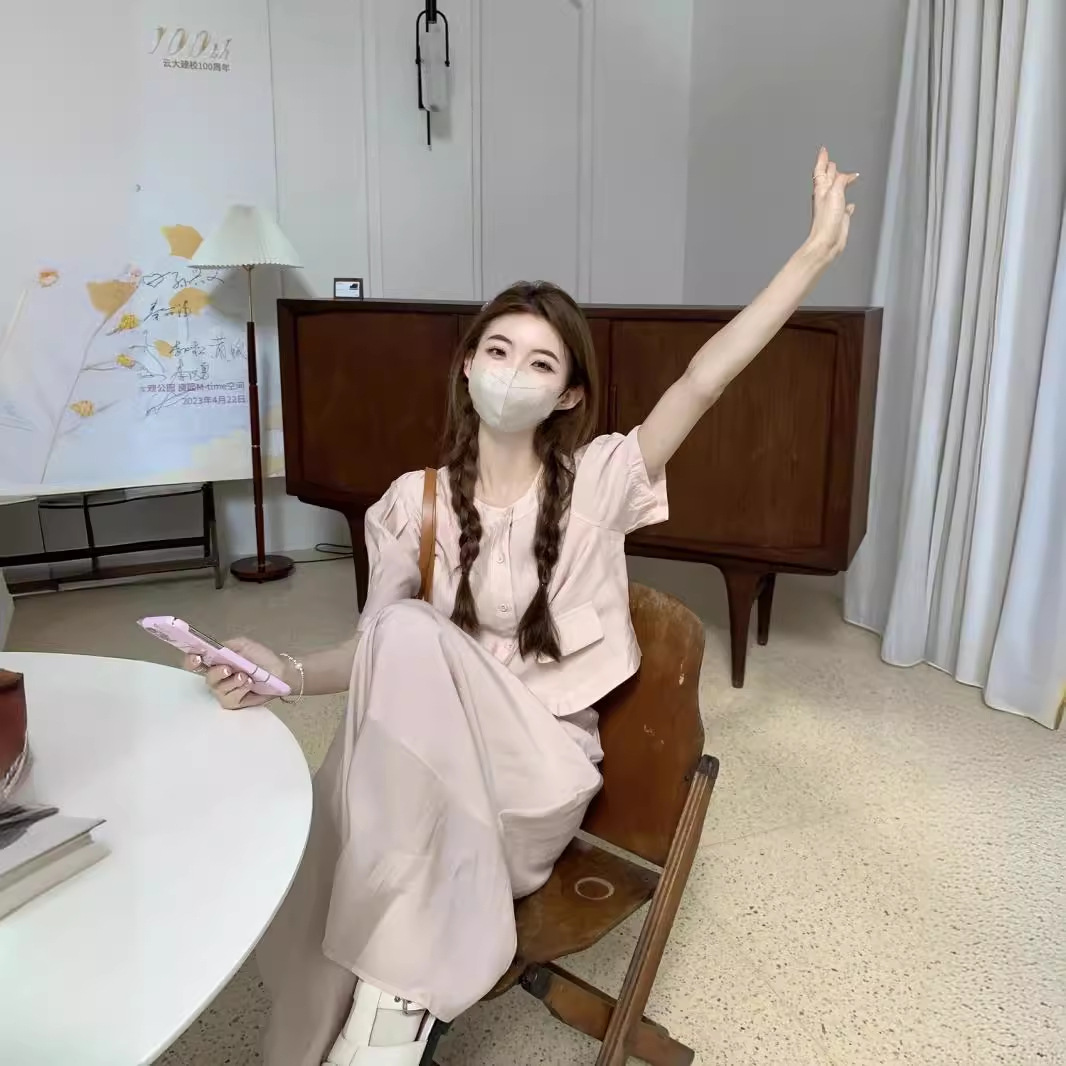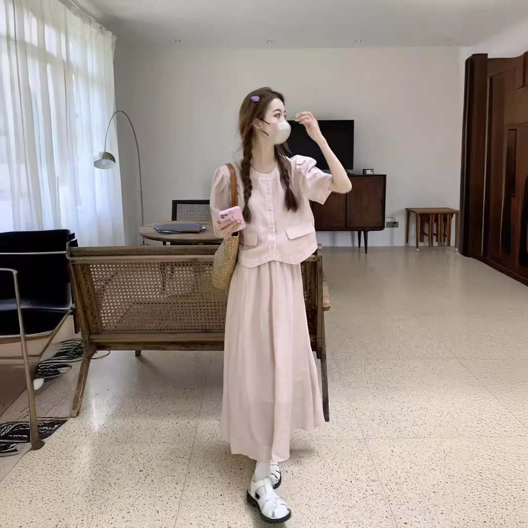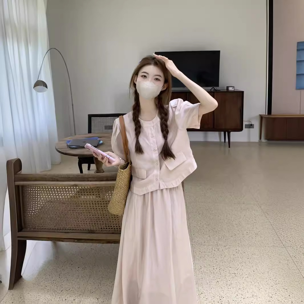 | nameOriginal | Xiaoxiang Style Age-reducing suit Women's Summer New Chinese Fashion Solid Color Short-sleeved Shirt with Loose Waist Two-piece Skirt Set |