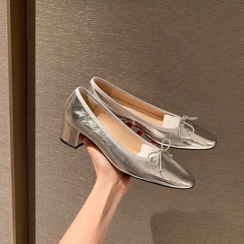 | nameOriginal | Xiaoxiang style thick heel genuine leather round toe bow shoes |