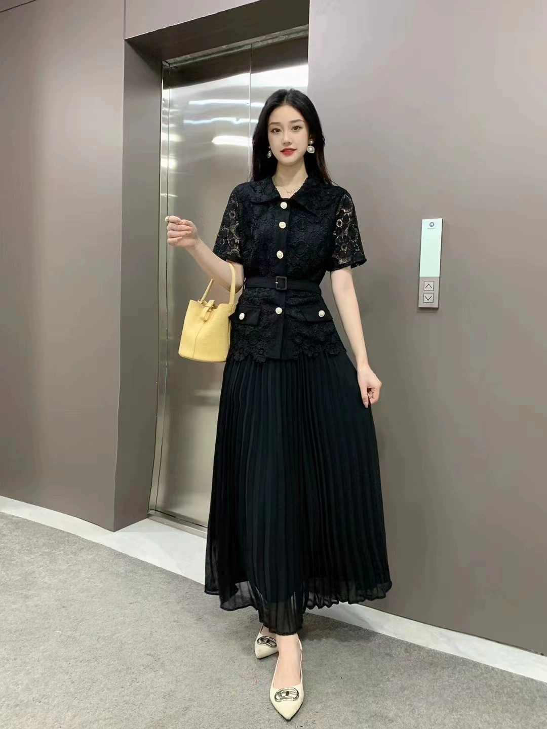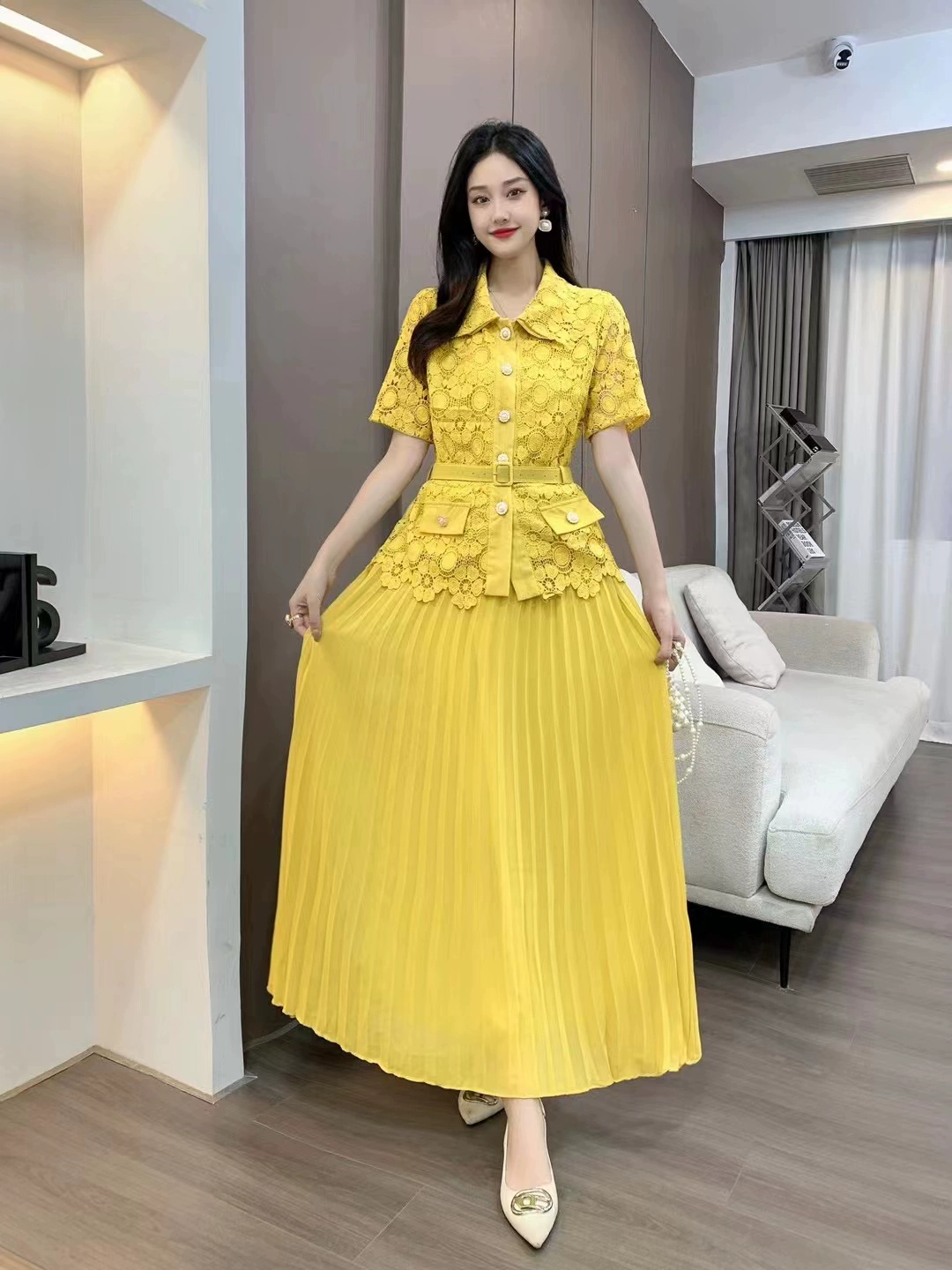 | nameOriginal | Xiaoxiangfeng celebrity stand collar short-sleeved top pleated lace |