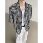 | nameOriginal | Xiaoxiangfeng houndstooth short-sleeved casual shoulder pad shirt |