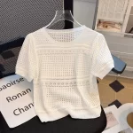 | nameOriginal | Xiaoxiangfeng ice silk white round neck short sweater |