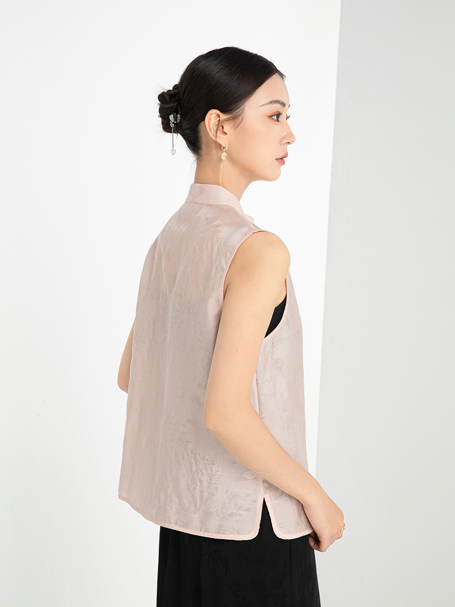 | nameOriginal | Xinge Tencel Acetic Acid New Chinese Style Vertical Collar Vest Summer New National Style Pink Jacquard One-word Buckle Top for Women |