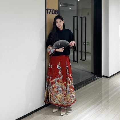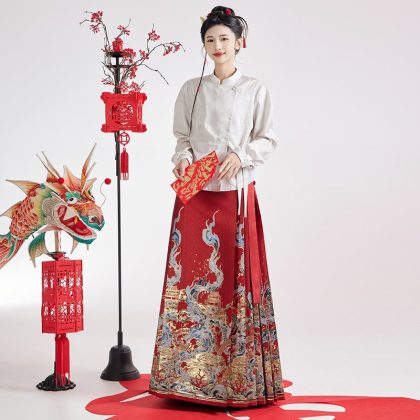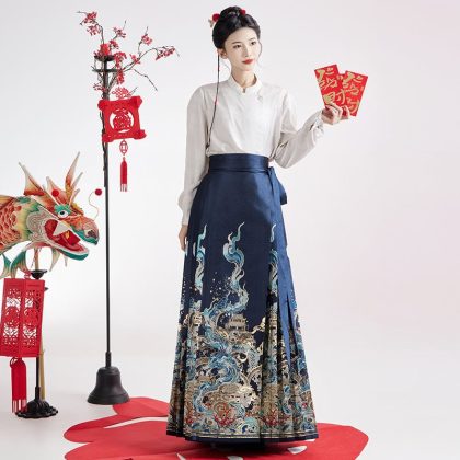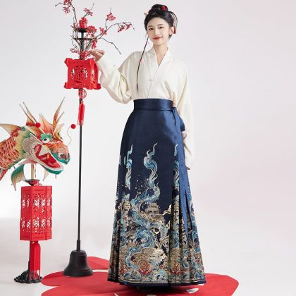 | nameOriginal | Xinghe Han Song [Dragon Bleu] Horse Face Skirt Imitation Makeup Flower Weaving Gold Han Clothing suit Guofeng 2024 Dragon Year Skirt |