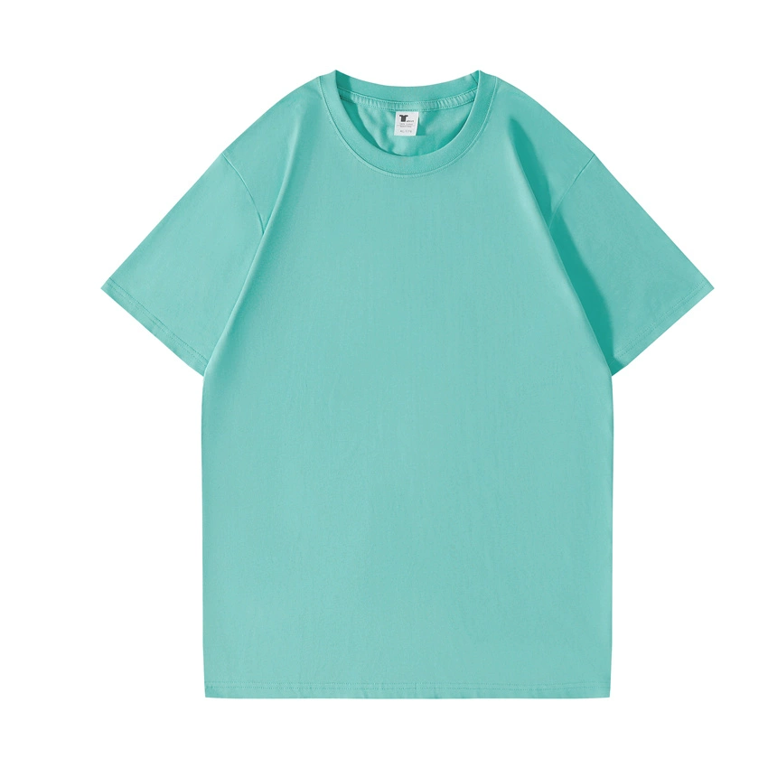 شينجيانغ كله القطن 220 جرام ثقيل القطن النقي النقي الدائري الرقبة قصيرة t -sleeved t -shirt القمصان نصف القاع المنقوشة مع أبيض t كبير الحجم