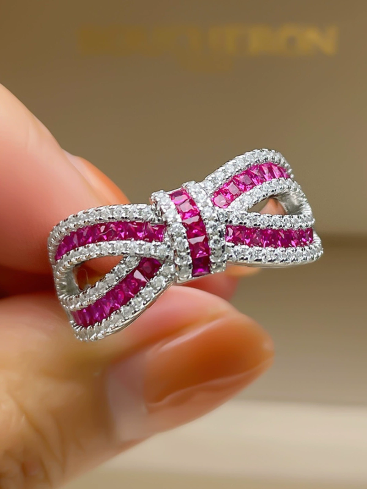 | nameOriginal | XIUSHU high bead three-dimensional bow ruby ring 925 sterling silver precision micro-inlaid women's new product |