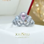 | nameOriginal | XIUSHU pink pink diamond ring for women ins trendy design niche cherry blossom pink diamond crown high carbon diamond sterling silver J149 |