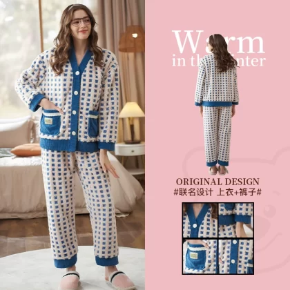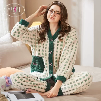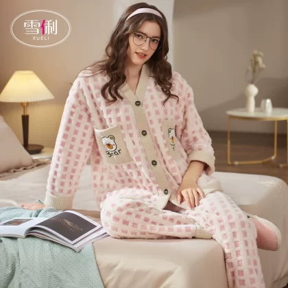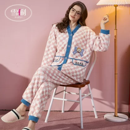 | nameOriginal | Xueli Coral Velvet Cute Pajamas for Women 2024 New Autumn and Winter Plus Velvet Thickened Flannel Home Clothing Set |