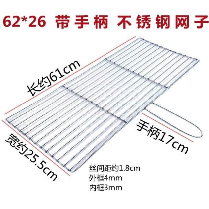 XXP4 thick stainless steel single-layer barbecue net with handle large grilled leek grilled fish commercial barbecue clip mesh barbecue