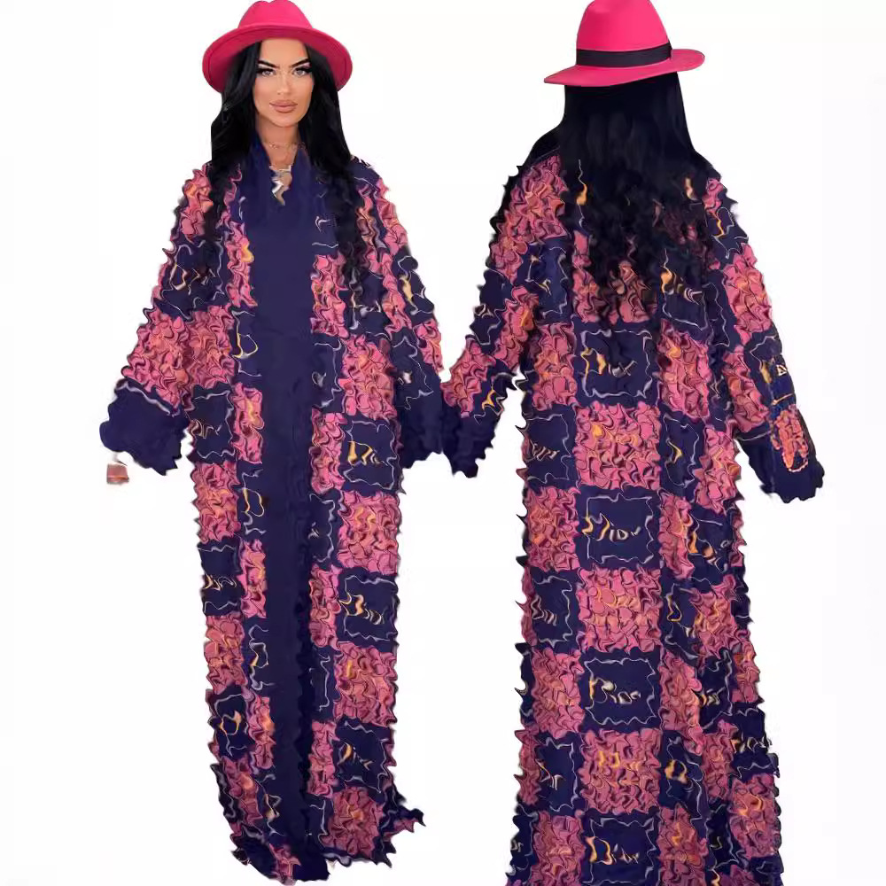 Y71378 ملابس نسائية أوروبية وأمريكية AliExpress خريف موضة جديدة مطبوعة نمط اجتماعي كم طويل عباءة معطف طويل رقيق