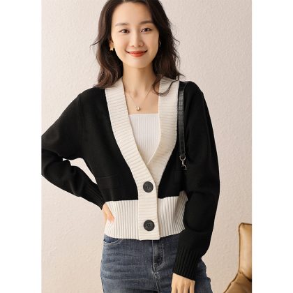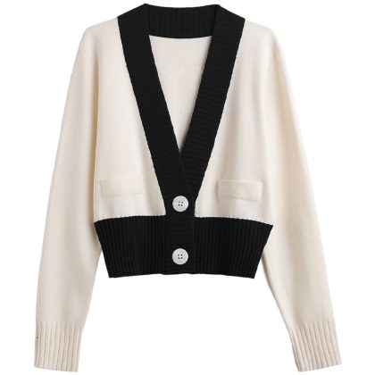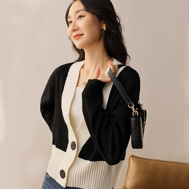 | nameOriginal | [Ya Qi] M Lazy Contrast Color V-collar Wool Cardigan Jacket Women's Classic Joker Sweater Cardigan for Autumn and Winter |