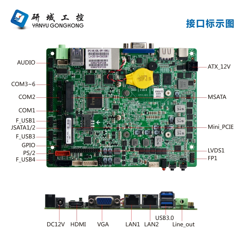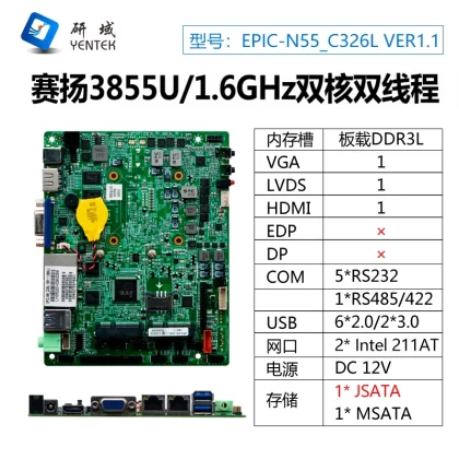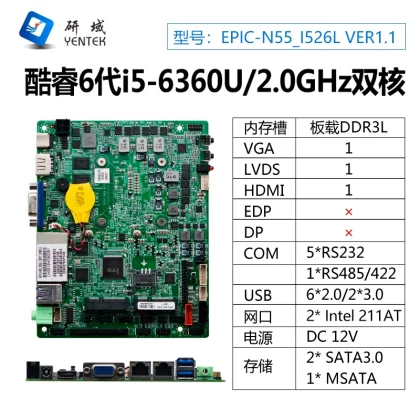 | nameOriginal | Yanyu N55 industrial control motherboard dual network 3855U/I5-6360U onboard memory mini itx computer 3.5 inch 6 string |