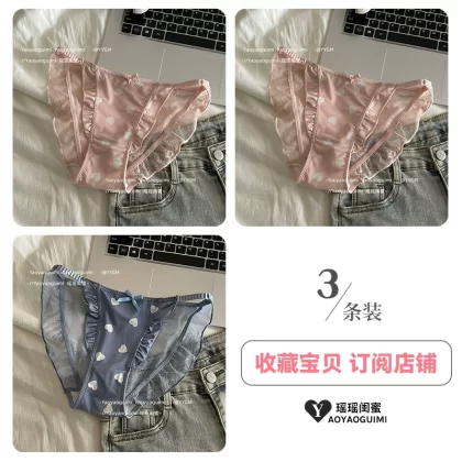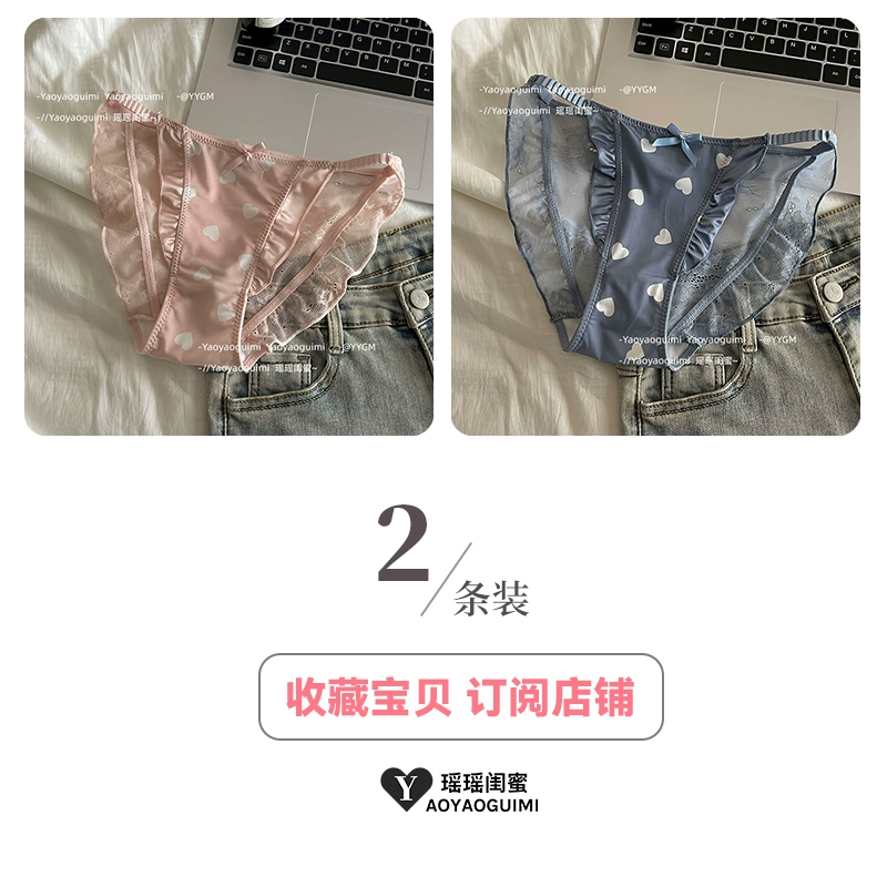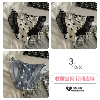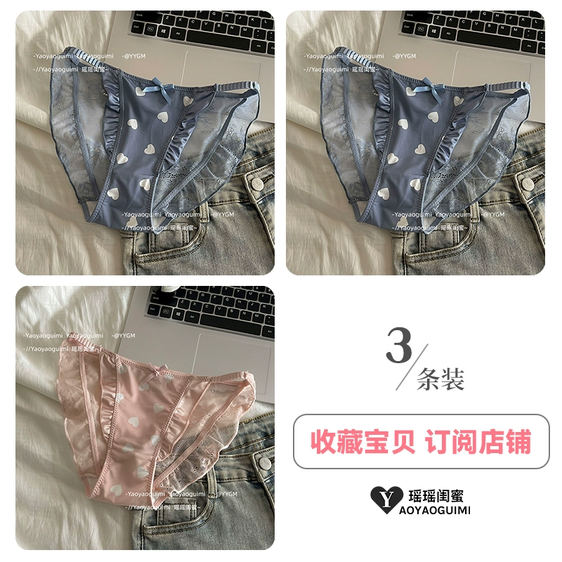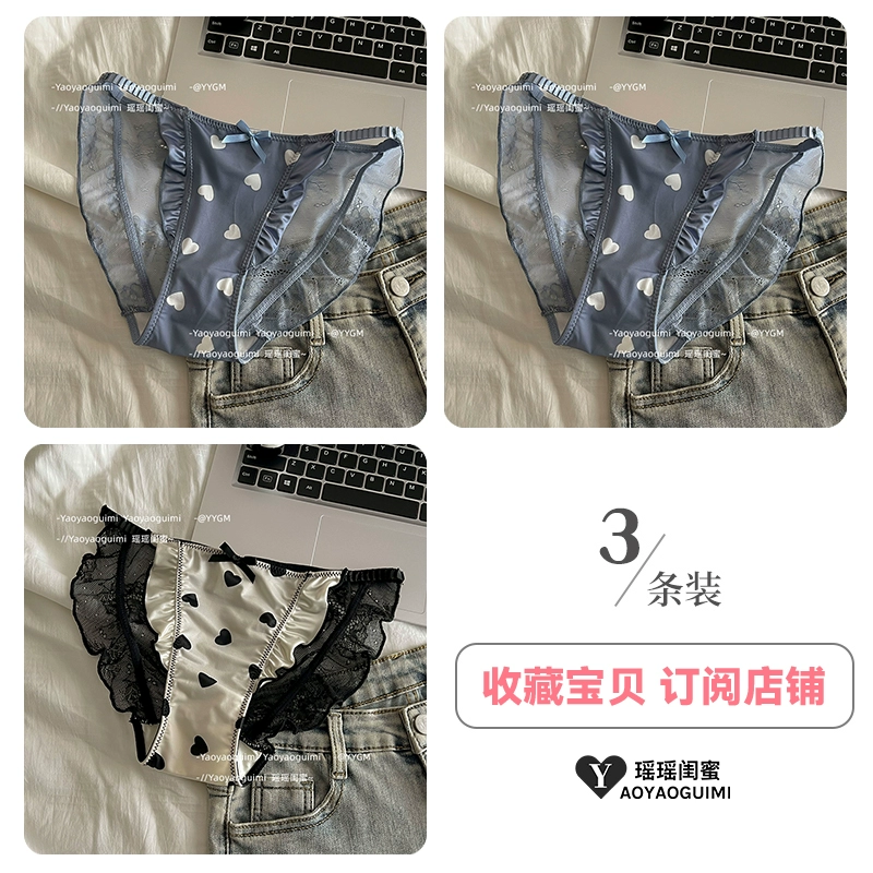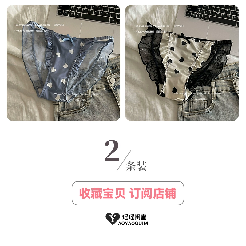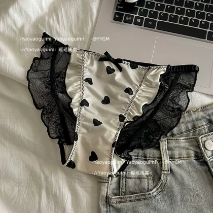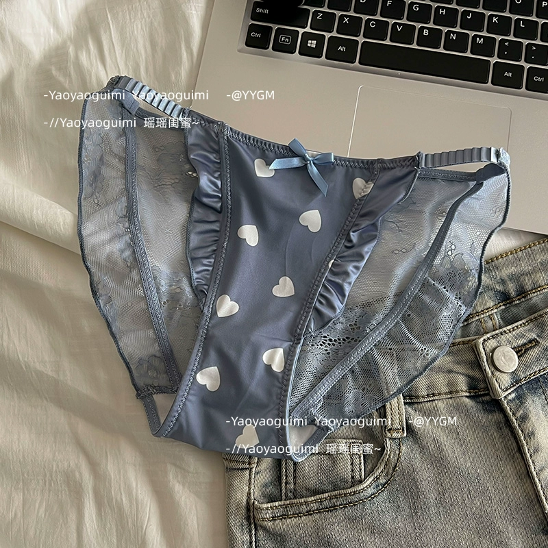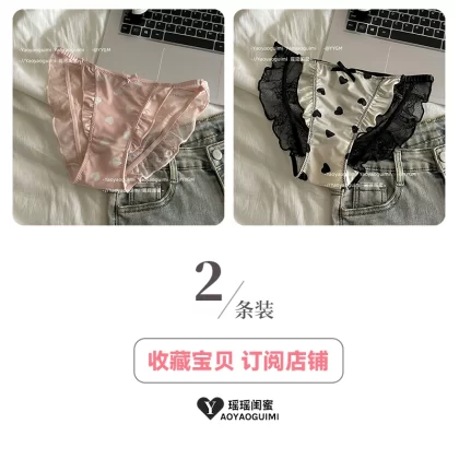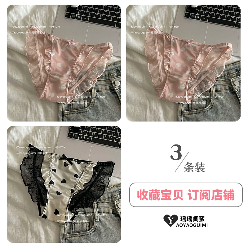 | nameOriginal | Yaoyao's best friend's original design sexy lace fungus high-end satin love panties women's high slit briefs |