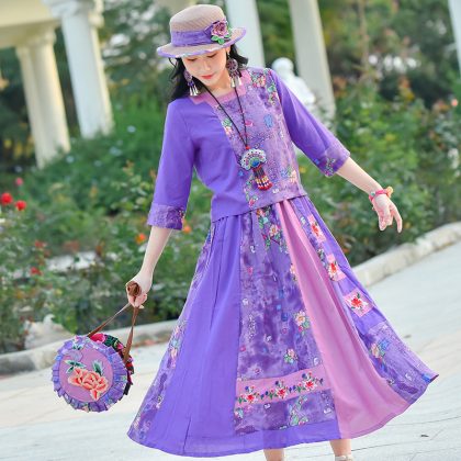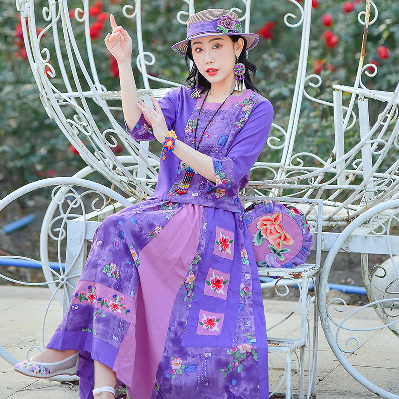| nameOriginal | YDL1013 Ethnic Style Women's Clothing 2022 New Style Tea Clothing Printed Color Patch Embroidered Cotton and Linen Suit Women |