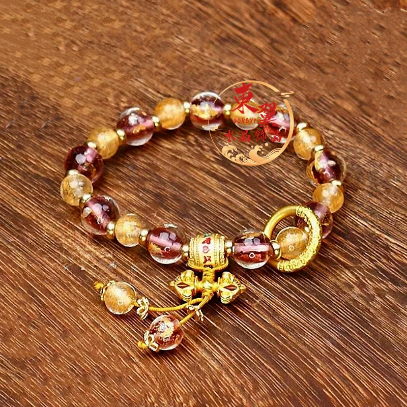 Yellow and purple gold foil six-character mantra bucket beads running ring Vajra transfer bead bracelet incense gray porcelain glass temple bracelet