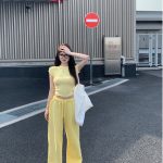 | nameOriginal | Yellow Fashion Sports Casual Suit Women's Summer 2024 New Short-sleeved T-shirt Top Wide Leg Pants Two-piece Set |