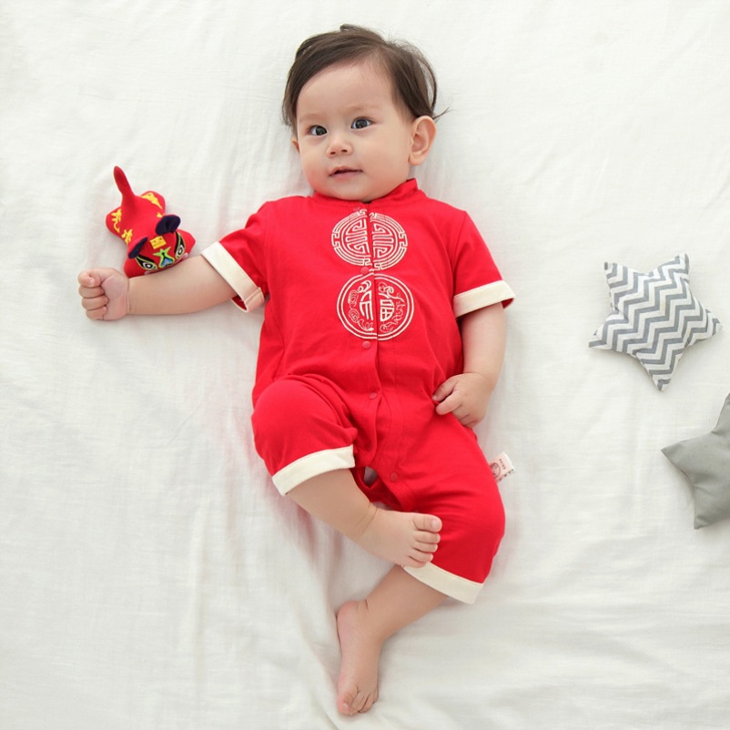 | nameOriginal | Yellow jacket baby dragon boat festival 100 days summer Tang suit catch week dress 100 days full moon suit class a cotton conjoined span |