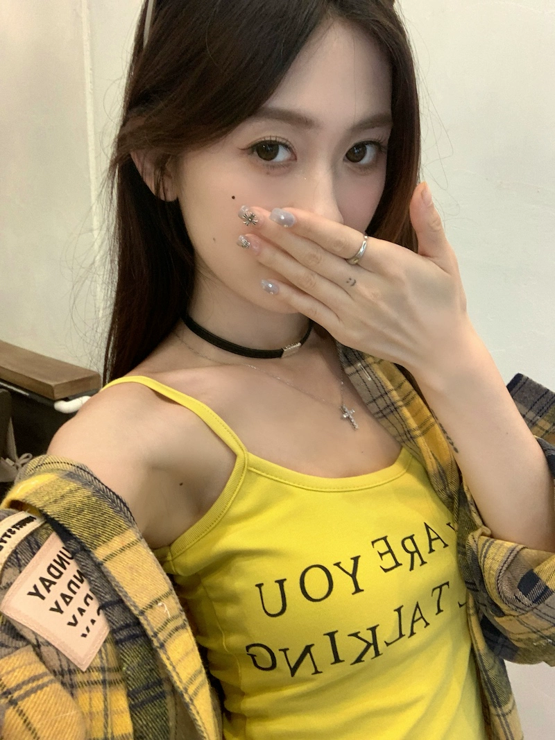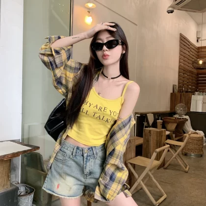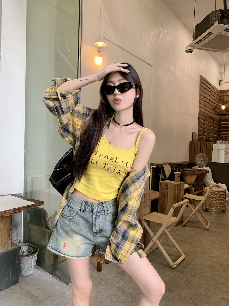 Yellow plaid vintage brushed loose long-sleeved shirt