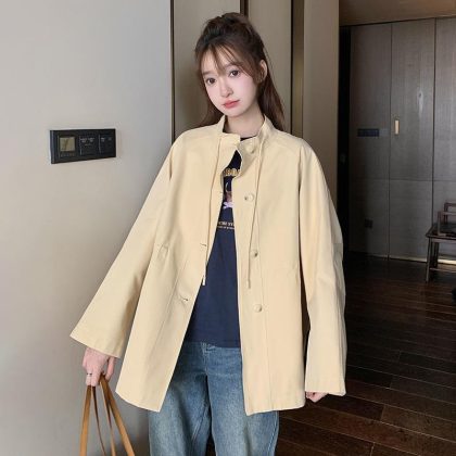 | nameOriginal | Yellow workwear windbreaker coat for women short 2024 early spring new small college style fashion age-reducing high-end sense |