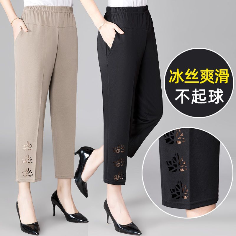 | nameOriginal | Yh Middle-aged and Elderly Women's Cropped Pants Summer Thin Elastic High Waist Stretch Grandma's Cropped Pants Loose Mom's Pants |