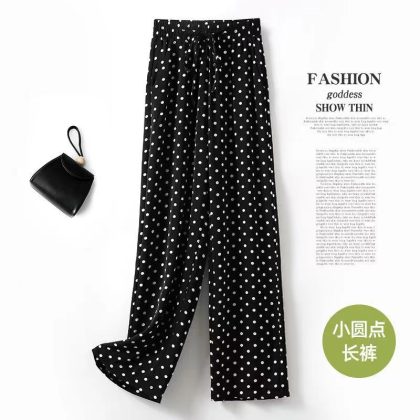 | nameOriginal | YH2024 New Summer Dosing Ice Silk Wide Leg Pants Thin Polka Dot Women's Pants Loose Straight Nine-point Casual |