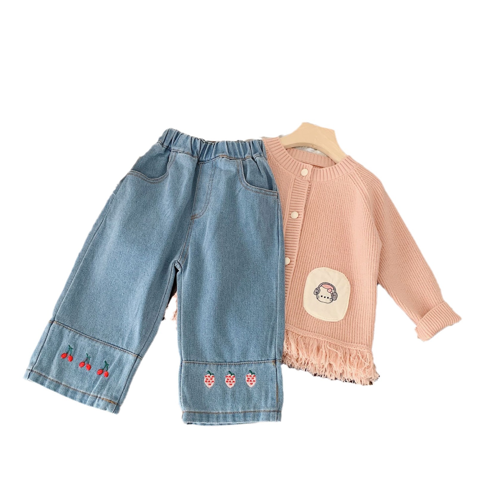 | nameOriginal | Yicheng children's clothing 2024 spring new Korean style girls' embroidered Denim straight pants wide leg pants loose cropped pants |
