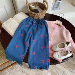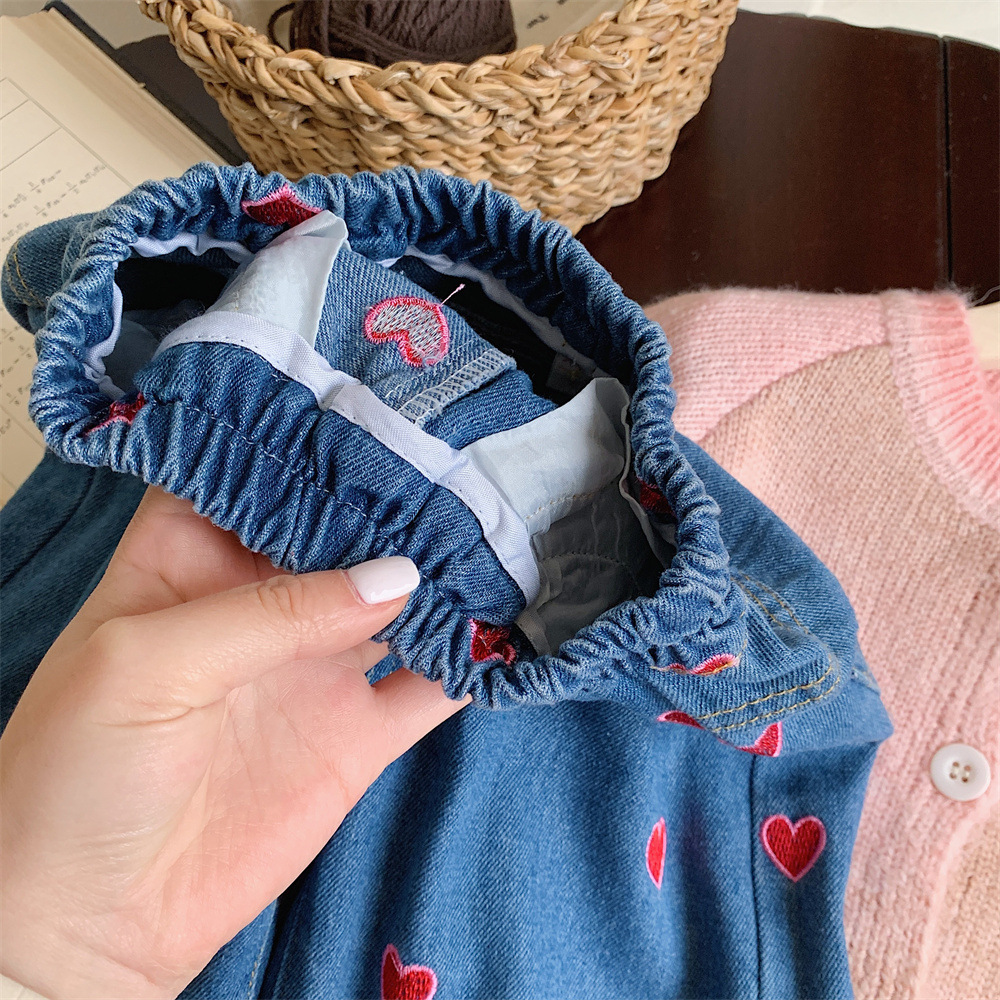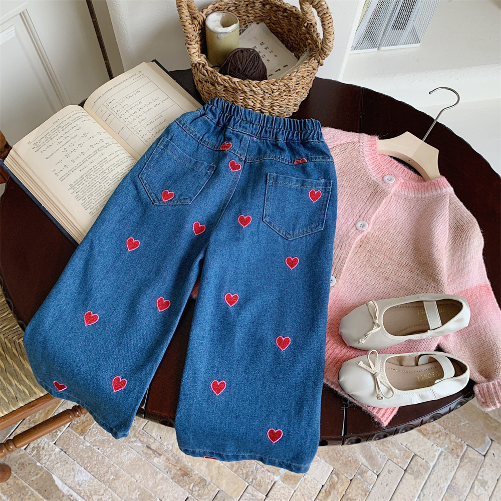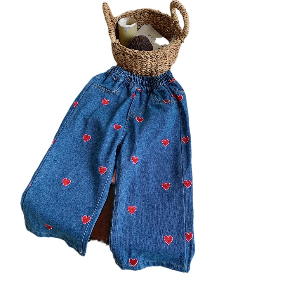 Yicheng girls' jeans 2024 spring new Korean style baby girls' love wide-leg pants long pants loose straight