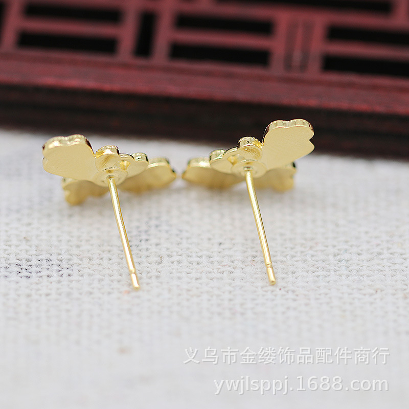 | nameOriginal | Yiwu Golden gold-plated pure copper color-retaining DIY dripping oil point emerald flower ear pin earrings bridal handmade accessories B1938 |