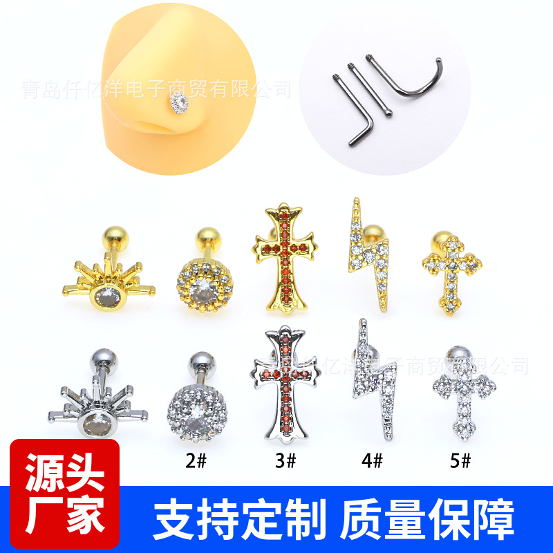 nameOriginal | Yiyang cross-border zircon nose nail creative micro inlay nose nail round nasal septum ear nail human body puncture jewelry wholesale |