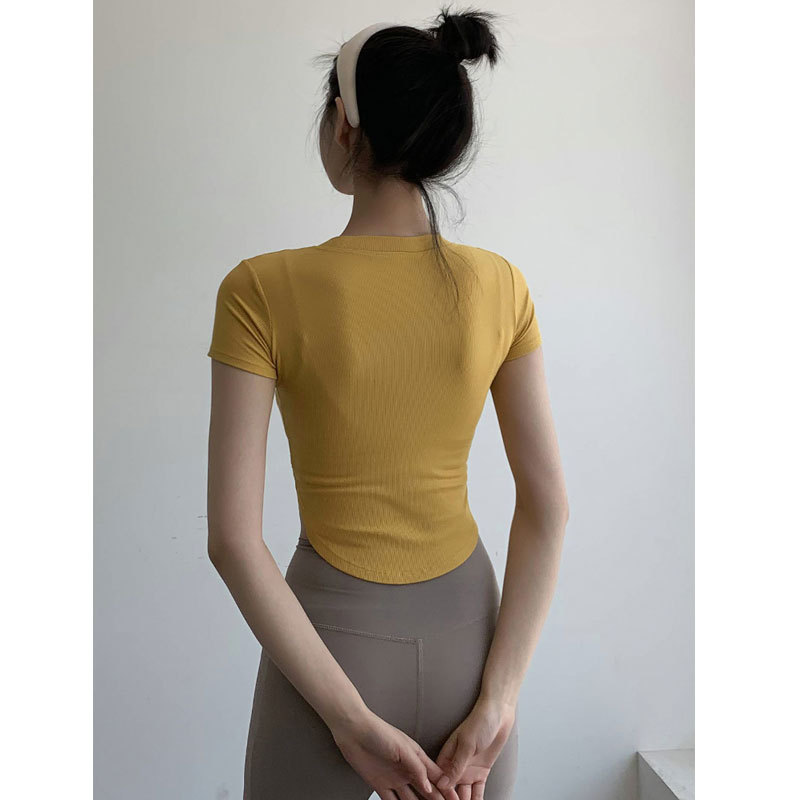 | nameOriginal | Yoga Top Women's Summer Elastic Split Slim-fit Slimming Running Fitness Clothes Training Quick-drying Outdoor Sports T-shirt |