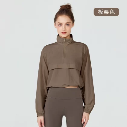 | nameOriginal | Yoga women stand collar loose slimming fitness jacket |