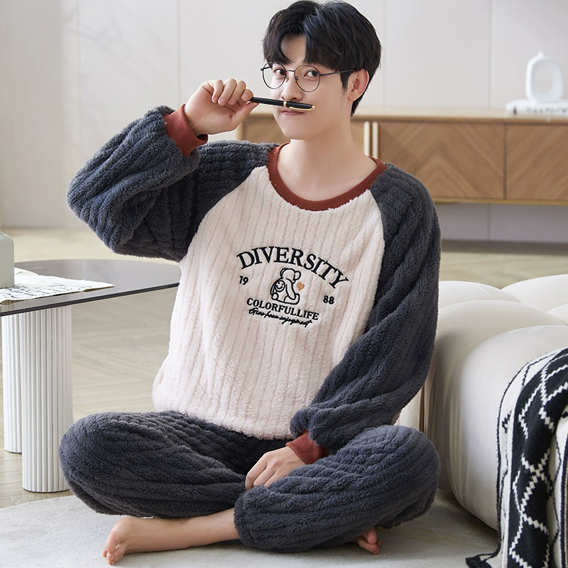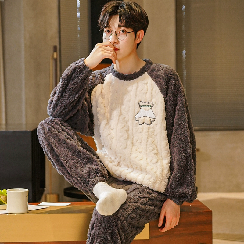 | nameOriginal | Young men's pajamas autumn and winter coral velvet thickened velvet casual pullover warm flannel home clothes winter |