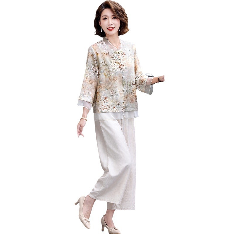 Young mother's summer new Chinese style national style shirt two-piece western style middle-aged and elderly women's small shirt set