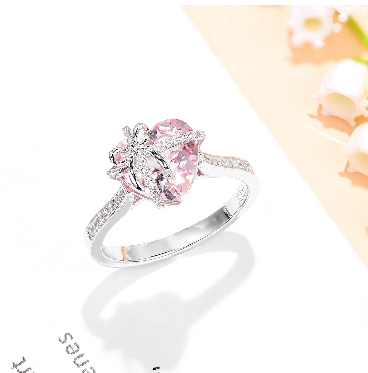 Young super sparkling heart shaped morganite yellow zirconium pink diamond