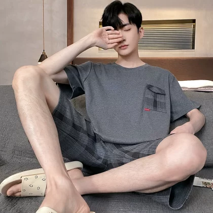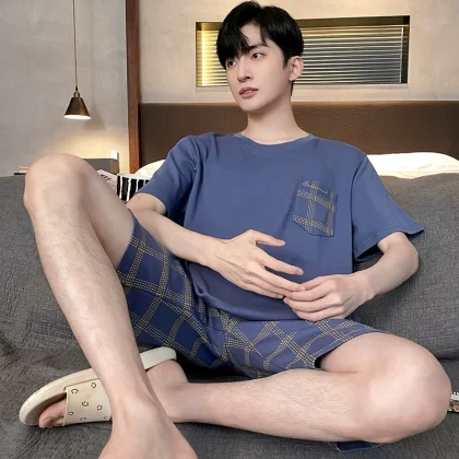 | nameOriginal | Yu Zhaolin pajamas men's summer pure cotton thin short-sleeved casual wearable youth student home wear set |