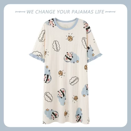 | nameOriginal | Yu Zhaolin spring and summer pure cotton short-sleeved mid-length nightgown |