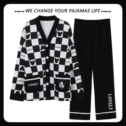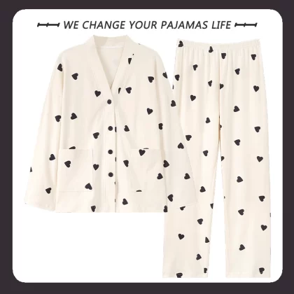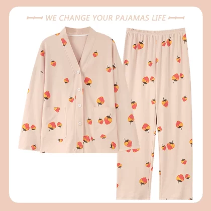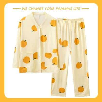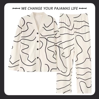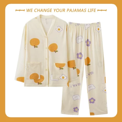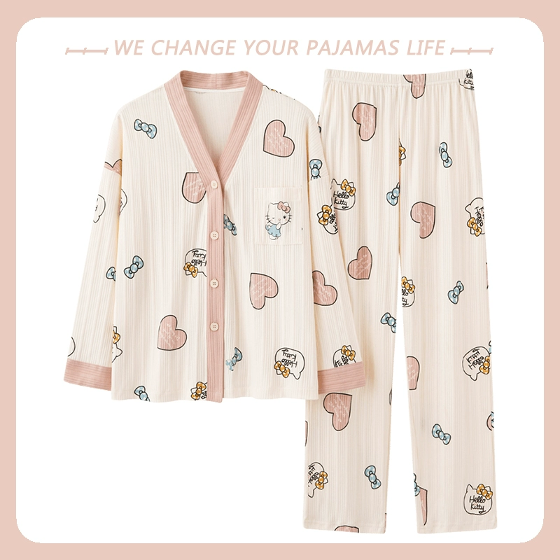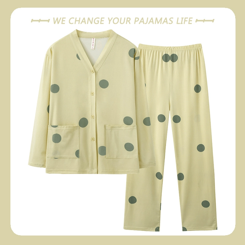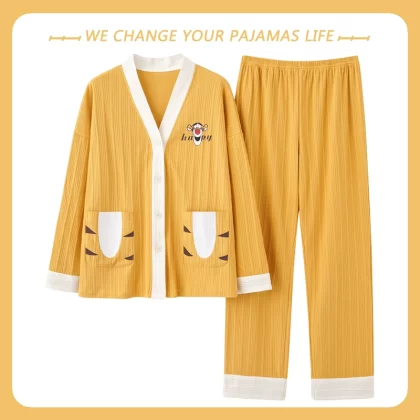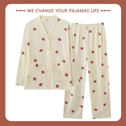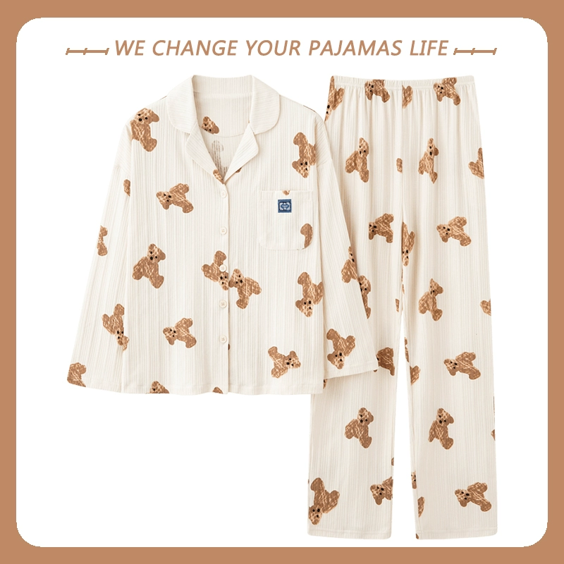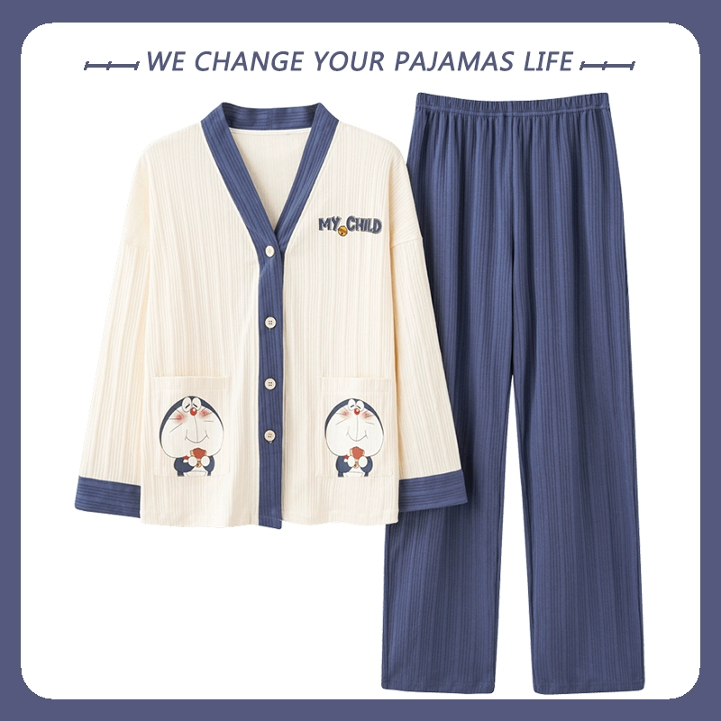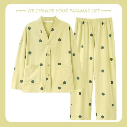 بيجامة نسائية من Yu Zhaolin بأكمام طويلة على طراز المشاهير على الإنترنت من القطن للخريف والشتاء